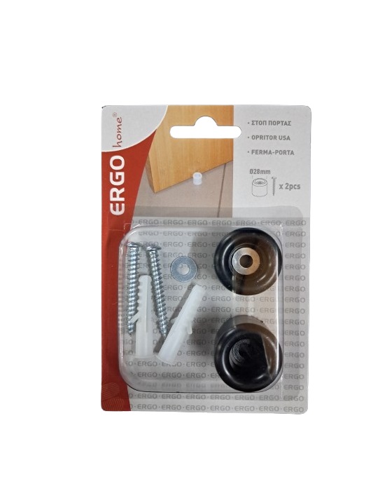 Βιδωτό στοπ πόρτας σε σετ 2 τμχ, μαύρο χρώμα.
