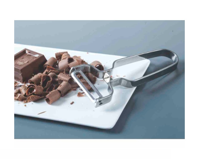 Αποφλοιωτής από ανοξείδωτο ατσάλι (18/10) με εξαιρετικά κοφτερή,οδοντωτή λεπίδα 4.5εκ. Ιδανικός για να ξεφλουδίζει με ευκολία φρούτα, λαχανικά και τυριά, ακόμη και σοκολάτα.
