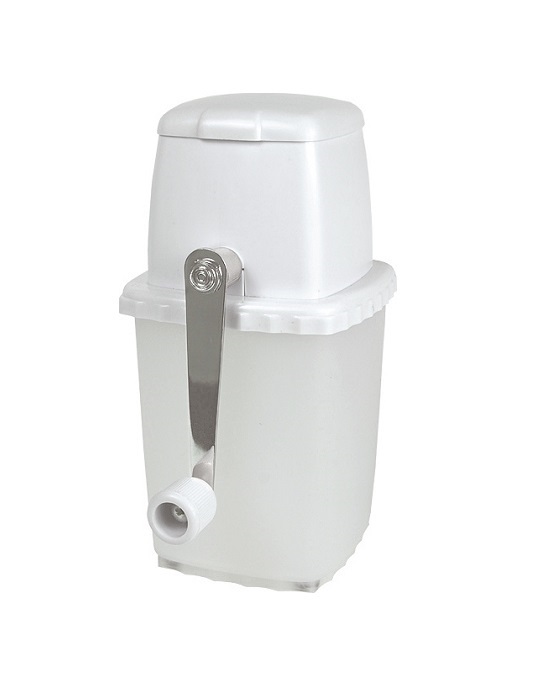 Χειροκίνητος παγοθραύστης από ανθεκτικό πλαστικό, με μοχλό και ανοξείδωτες λάμες θρυμματισμού.