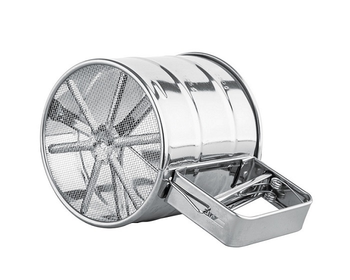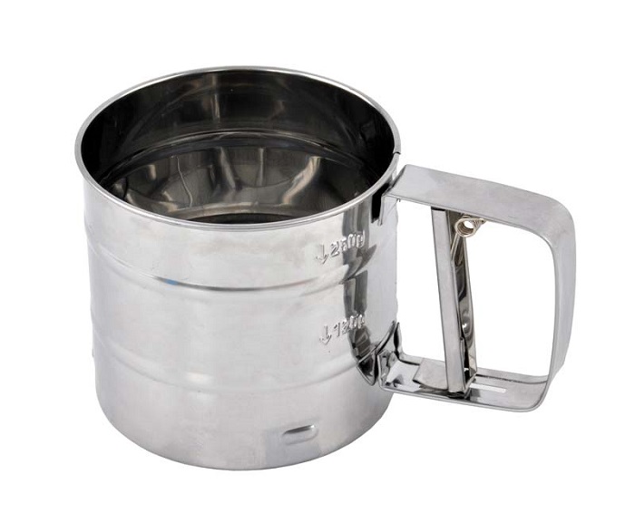 Πρακτικό, μικρό κόσκινο αλουμινίου για να κοσκινίζετε αλεύρι σε μικρή ποσότητα ή να ρίχνετε την άχνη στα γλυκά σας. Το χερούλι διευκολύνει τη χρήση του και ο έλικας στο εσωτερικό του διανέμει καλύτερα το υλικό σας. Διαβαθμίσεις από 125g έως 250g.