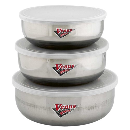 Ανοξείδωτα φαγητοδοχεία με καπάκι σετ 3τμχ 18303