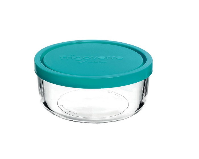 Δοχεία φαγητού γυάλινο, στρόγγυλο της εταιρίας frigoverre με πλαστικό καπάκι. Τοποθετείται στο ψυγείο για να αποθηκεύσετε τα φαγητά. Είναι επίσης κατάλληλο για φούρνο μικροκυμάτων χωρίς το καπάκι του.