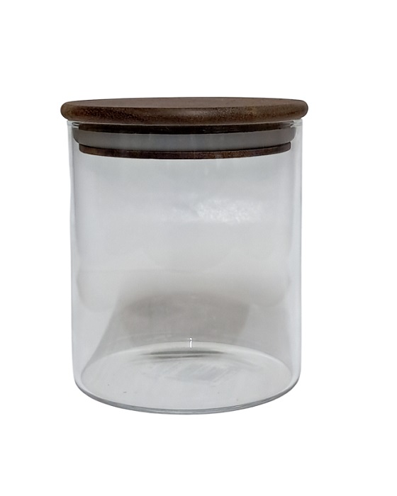 Γυάλινο βάζο με ξύλινο καπάκι ύψους 12εκ. και διαμέτρου 10εκ., χωρητικότητας 750ml. Ιδανικά για αποθήκευση ζυμαρικών, οσπρίων, ρυζιού, καφέ κτλ.