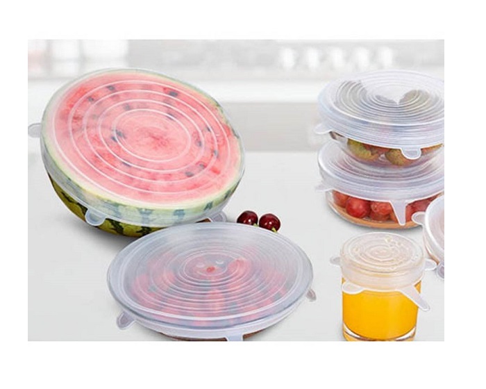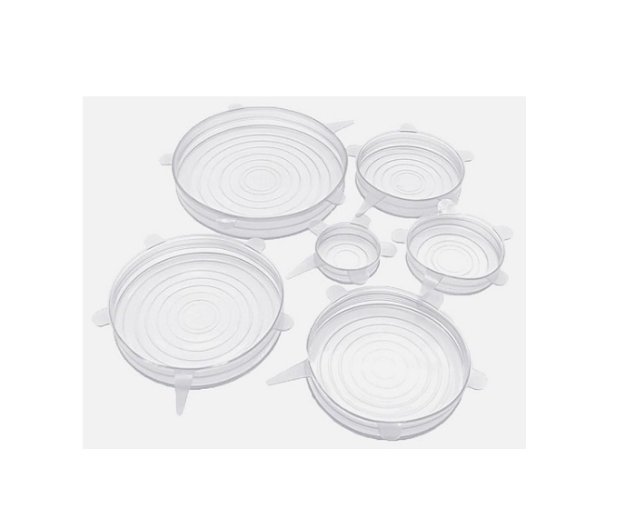 Ελαστικά καπάκια σιλικόνης σε σετ των 6τμχ κατάλληλα για τρόφιμά. Κρατάνε τα φαγητά φρέσκα και αποφεύγετε τις οσμές και την χρήση μεμβράνης. Λόγω της ελαστικότητάς τους μπορούν να τοποθετηθούν σε διαφορετικά μπολ, πιάτα ,ποτήρια, κατσαρόλες, κανάτες χυμών ή και σε τρόφιμα (φρούτα, λαχανικά κτλ). Η διάμετρός τους κυμαίνεταιι από 7εκ. έως 20εκ.