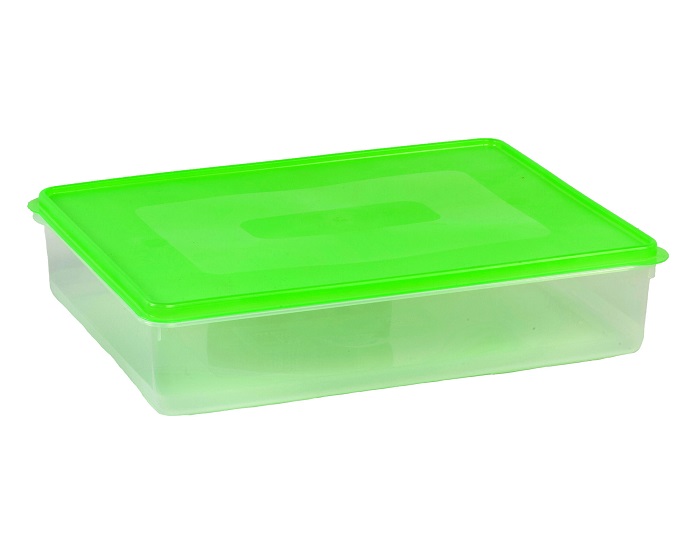 Πλαστικό, χαμηλό,ορθογώνιο φαγητοδοχείο με καπάκι. Χρώματα στο καπάκι ανάλογα με τη διαθεσιμότητα και κατόπιν συννενόησης. Είναι κατάλληλα για φούρνο μικροκυμάτων χωρίς το καπάκι τους, για κατάψυξη, πλυντήριο πιάτων.Οι διαστάσεις του είναι Μ34,5 x Π26,5 x Υ6,5και η χωρητικότητά του 6 λίτρα.