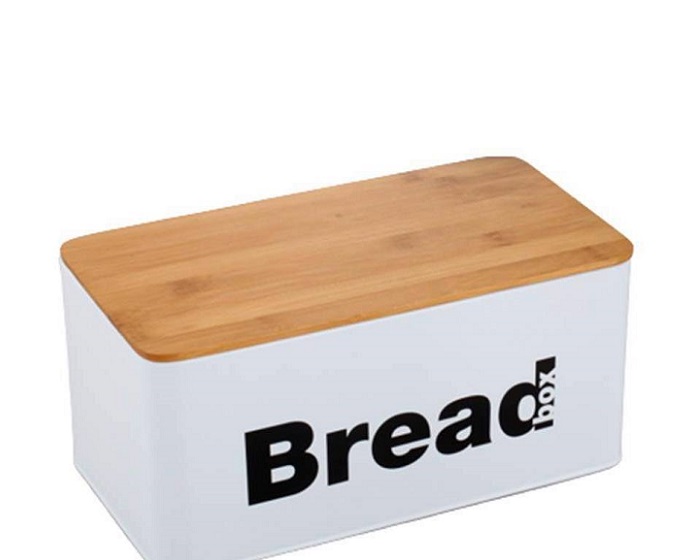 Μεταλλική ψωμιέρα με μπαμπού καπάκι λευκή