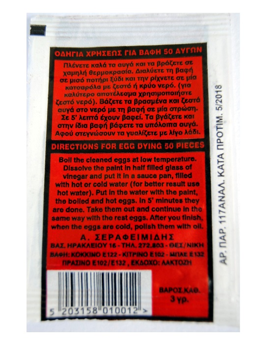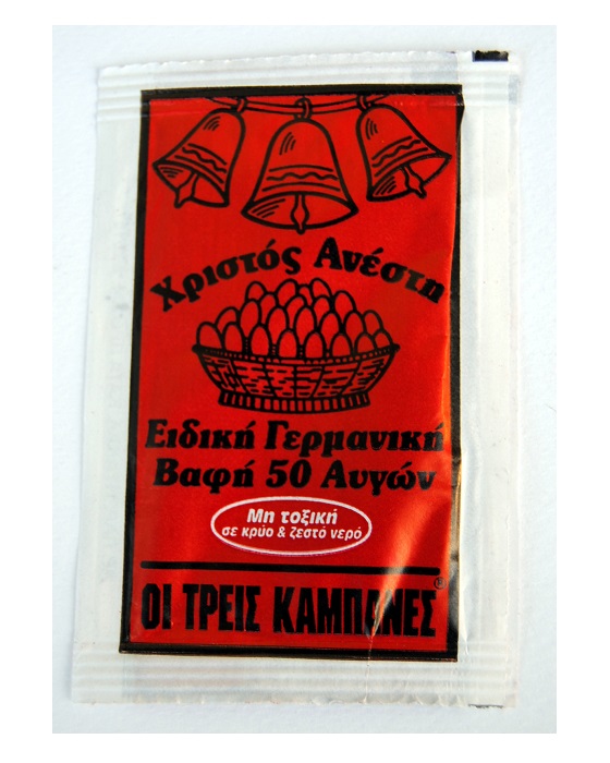 Βαφή αυγών μη τοξική 3 ΚΑΜΠΑΝΕΣ. Η ποσότητα είναι αρκετή για 30-50 αυγά και διατίθεται σε 4 χρώματα (κόκκινο, κίτρινο, μπλε, πράσινο).Μη τοξική.