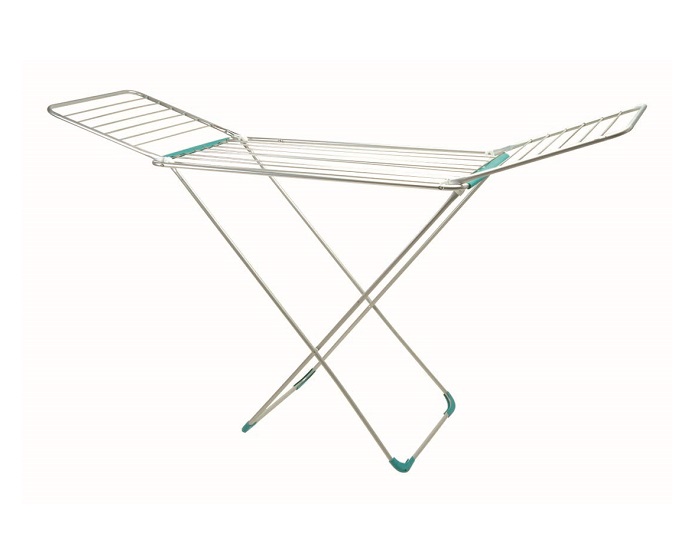 Απλώστρα δαπέδου με συνολική επιφάνεια απλώματος 18 μέτρα. Η επιφάνεια απλώματος είναι από αλουμίνιο και το πόδια είναι μεταλλικά. Διπλώνει για εξοικονόμηση χώρου. Χρώμα ανάλογα με την διαθεσιμότητα και κατόπιν συννενόησης.