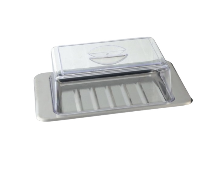 Πρακτική ανοξείδωτη τυριέρα 18/10 με πλαστικό καπάκι. Εσωτερικές διαστάσεις 17*12εκ. και εσωτερικό ύψος 7,5εκ.