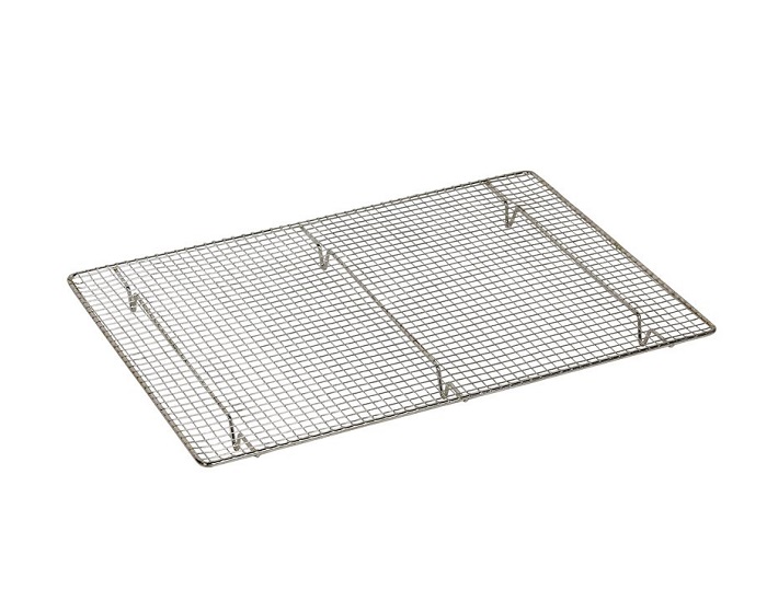 Ανοξείδωτη σχάρα με πλέγμα κατάλληλη για τρόφιμα, για ελμυρές και γλυκές παρασκευές. Ιδανική για το στράγγισμα των γλυκών που απαιτούν σιρόπι, επικάλυψη σοκολάτας κτλ. Το ύψος από τα ποδαράκια είναι 2,2εκ. Πλένεται στο πλυντήριο πιάτων.