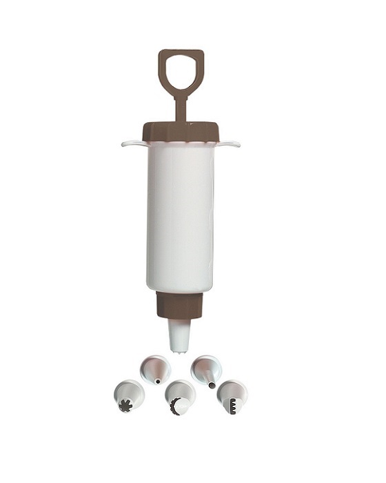 Πλαστικό κορνέ με σύριγγα και 6 στόμια για τη διακόσμηση των γλυκών.